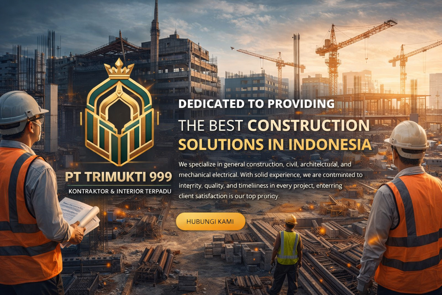 PT TRIMUKTI 999 adalah perusahaan kontraktor yang berdedikasi untuk memberikan solusi konstruksi terbaik di Indonesia. Kami bergerak di bidang konstruksi umum, sipil, arsitektur, dan mekanikal elektrikal. Dengan pengalaman yang solid, kami berkomitmen pada integritas, kualitas, dan ketepatan waktu dalam setiap proyek yang kami tangani, memastikan kepuasan klien adalah prioritas utama kami.